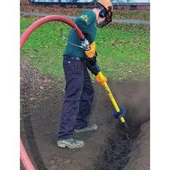 - Utilizing the power of compressed air, AirSpade 2000 uncovers underground objects, utility lines, or even sensitive tree roots without harm. Featuring the high performance, proprietary supersonic nozzle, AirSpade 2000 digs faster and more efficiently than competitive tools. Rugged, lightweight construction. Dead-man trigger ensures safe operation