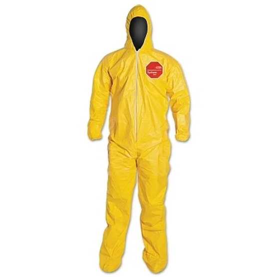 Tychem 2000 Coverall, Serged Seams, Attached Hood And Socks, Elastic Wrists, Zipper Front, Storm Flap, Yellow, 3X-Large (12 CA) – DuPont QC122S-3XL