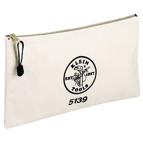 Zipper Bag, 1 Compartment, 12 In X 7 1/2 In, Canvas, White – Klein 5139